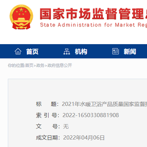 中国质量新闻网讯 近日,市场监管总局通报2021年水暖卫浴产品质量国家监督抽查情况。其中,陶瓷片密封水嘴抽查不合格率为16.9%。