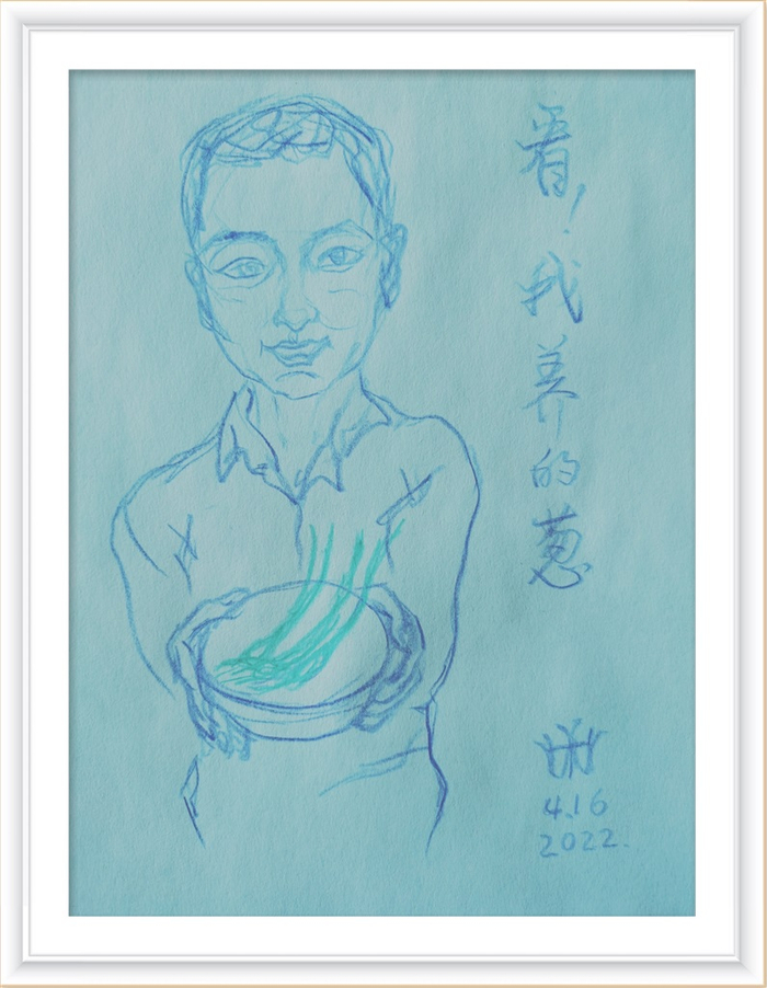 浦西封控比浦东要晚几天,为此还来得及抢购一些生活物资。只是蔬菜不宜久存多藏,封控期又远远超出了预期。前些日子,先后收到街道送来的两次蔬菜,一定程度上缓解了吃菜难的问题。最为难得的是,其中还有一把小葱。叮嘱家人量入为出地做菜,妻子颇有想法地将做菜剩下的葱根也留了下来。放在小碗里,倒上水,置阳台上,两三天就发现小葱长出很大一截子,只是稍显纤瘦。这就是生命,毕竟是春天。网络视频已有人介绍自己居家抗疫期间开始水培白菜根,有机会可以试试。