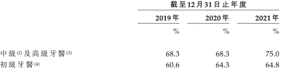 2019年、2020年、2021年,牙博士中级及高级牙医年度留存率分别为68.3%、68.3%、75.0%,初级牙医留存率分别为60.6%、64.3%、64.8%。