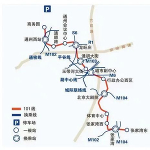 在运营交路及配线方案方面,M101线一期工程控制规模交路初期采用 2:1的大小交路开行方案,近、远期采用一个大交路开行方案。根据《公示》,M101建成后,将衔接多层级交通网络,锚固通州西站及副中心枢纽建设,实现与地区功能的联动发展。