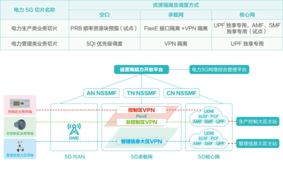 生产控制大区,生产控制大区5G切片做端到端硬隔离。承载网划分VPN做逻辑隔离。核心网部分,UPF独立部署,由电力专用独享。空口部分,生产控制大区业务做基于5QI的优先级调度,并在山东开展空口PRB频率资源块预留试点。