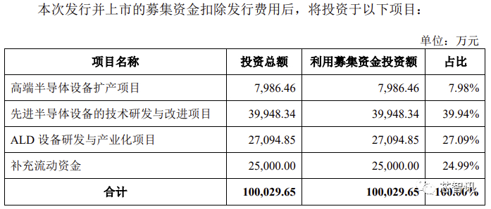 根据此前的招股计划,拓荆科技拟募资月10亿元,主要用于先进半导体设备的技术研发与改进项目、ALD设备研发与产业化项目、高端半导体设备扩产项目及补充流动资金。