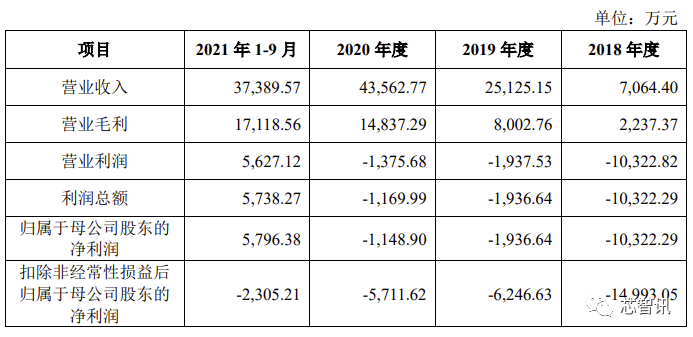 招股书显示,2018-2020年及2021年1-9月(以下简称“报告期内”),拓荆科技营收分别为7,064.4万元、25,125.15万元、43,566.77万元、37,389.57万元;净利润分别为-10,322.29万元、-1,936.64万元、-1,169.99万元及 5,704.87万元;扣除非经常性损益后归属于母公司所有者的净利润分别为?-14,993.05万元、-6,246.63万元、-5,711.62万元和-2,305.21万元。
