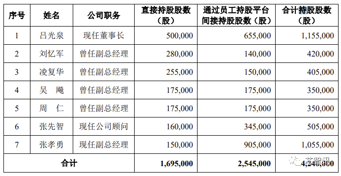 截至本上市公告书签署日,拓荆科技董事姜谦、拓荆科技董事长吕光泉、田晓明、张孝勇、周坚、叶五毛、宁建平等七名美籍专家,均为拓荆科技核心技术人员,直接持有并通过员工持股平台间接持有发行人激励股份,共计持有拓荆科技3.0881%的股权。具体情况如下: