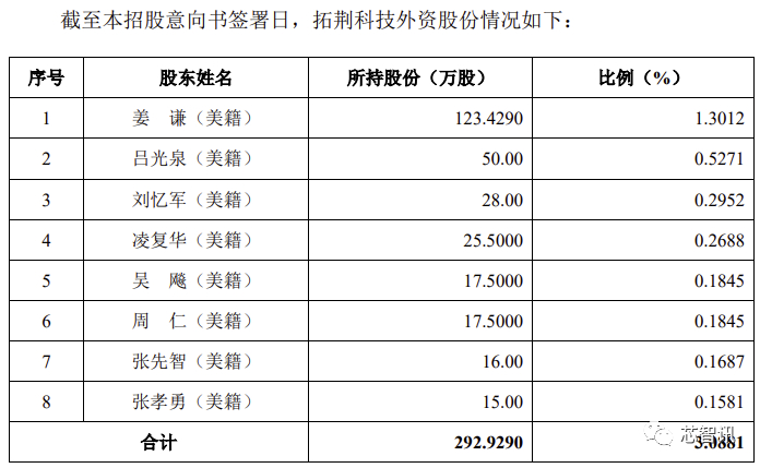 吕光泉、刘忆军、凌复华、吴飚、周仁、张先智、张孝勇等 8 名直接持有公司股份的自然人,以及芯鑫和、芯鑫全、芯鑫龙、芯鑫成、芯鑫旺、芯鑫盛、芯鑫阳、沈阳盛腾、沈阳盛旺、沈阳盛全、沈阳盛龙等 11 个公司员工持股平台,均为姜谦的一致行动人,合计持有拓荆科技15.1920%的股份。