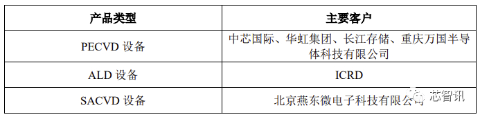 拓荆科技主要产品包括等离子体增强化学气相沉积(PECVD)设备、原子层沉积(ALD)设备和次常压化学气相沉积(SACVD)设备三个产品系列,并已广泛应用于中芯国际、华虹集团、长江存储、长鑫存储、厦门联芯、燕东微电子等国内晶圆厂14nm及以上制程集成电路制造产线,在不同种类芯片制造产线的多道工艺中得到商业化应用,同时公司已展开10nm及以下制程产品验证测试,公司在研产品已发往国际领先晶圆厂参与其先进制程工艺研发。