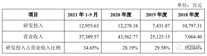 报告期内,公司研发费用分别为 10,797.31 万元、7,431.87 万元、12,278.18 万元和 12,955.63 万元,占各期营业收入的比例为 152.84%、29.58%、28.19%和 34.65%。研发费用金额较高和占营业收入的比例较大,这也是公司在报告期内亏损的主要原因。