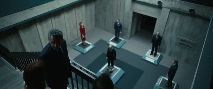 当我们的视角跟随被安排到“宏观数据精检部”赫丽,发现她的工作竟然只是对着电脑屏幕上漂浮着的蓝色数字,将其中一些“令人恐惧的”数字放到回收站里,敲敲电脑,就完成自己的工作时,我们对卢蒙的掌控更是心生畏惧。其实,不论是公司中层科贝尔女士,或者是健康部门的凯西,几乎剧中每个人的工作几乎都可以概括为——维系秩序、保持形式,卢蒙对人脑的改造,对人实施的控制与“分离”,也是为了达成这个目的。