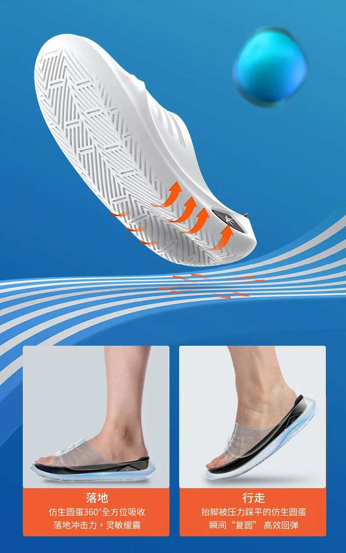 仿生圆蛋的鞋底会形成360°的泄力,有效减少足部压力。