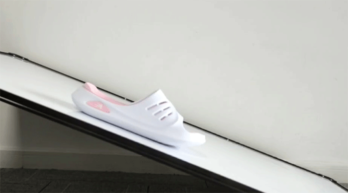 即使是将拖鞋放在45度光滑的斜面上,它还是牢牢固定在原处,没有移位!