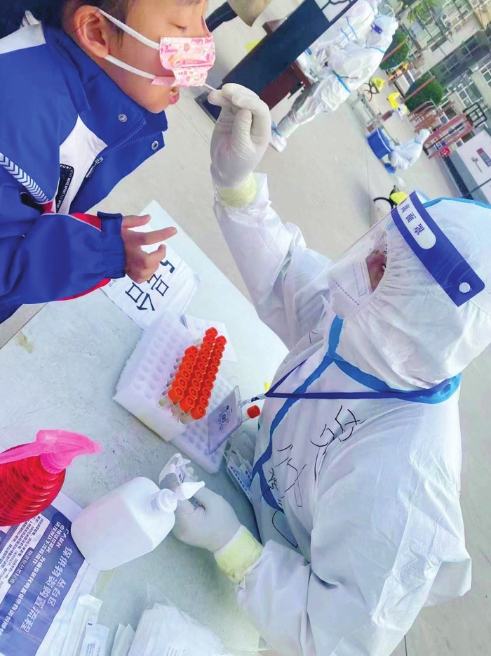 “9日起,3个人一组,我负责核酸检测,其他两位同志负责信息登记和消杀等工作。”他说,自己一上午要站着工作5个多小时,负责给600多位居民做核酸检测。