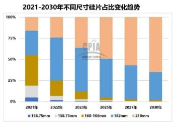 但截至目前,182mm系列产品仍是主流,210mm硅片占比相对较小。
