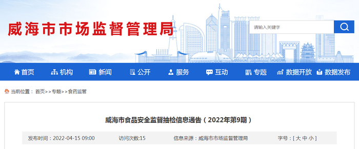| DC22371000415430285 | 8 | 荣成市人和镇诗伟冷藏厂 | 山东省威海市荣成市人和镇古楼村 | 荣成市人和镇诗伟冷藏厂 | 山东 | 鱿鱼串 | 计量称重 | 2022-02-06 | 速冻食品 | 2022年第9号 | 2022.4.15 | 市级监督抽检 | |