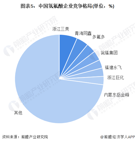 从下游产品竞争格局来看,根据纯度及应用领域的不同,氢氟酸分为工业级氢氟酸和电子级氢氟酸两种。