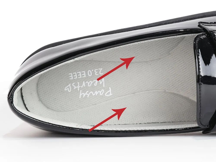 大圆头+4E加宽前脚掌,给了脚趾和前脚掌充足的空间自由伸展,不易挤,不易磨。对肉脚、宽脚掌、大趾骨特别友好。