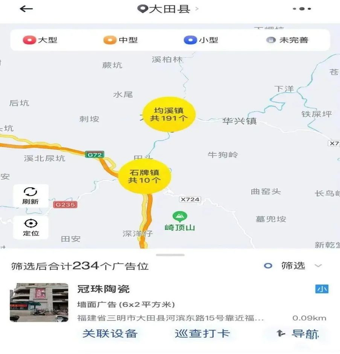 市场主体多、定位不精准,这是此前市场管理中常遇到的问题。“大田智网”还通过采集录入辖区内所有市场主体基本信息、户外广告、特种设备等信息,利用智能定位功能,在PC端和手机移动端上实时动态分布清晰可见,通过其导航功能轻而易举找到市场主体准确位置,有效防止边缘化市场主体“脱管”现象。