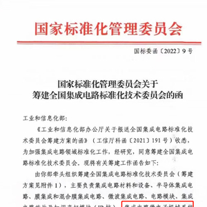 近期,国家标准化管理委员会(简称国家标准委)正式发出2022年9号函,同意成立“全国集成电路标准化技术委员会”。