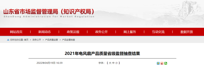山东省市场监督管理局抽查电风扇产品50批次 不合格10批次