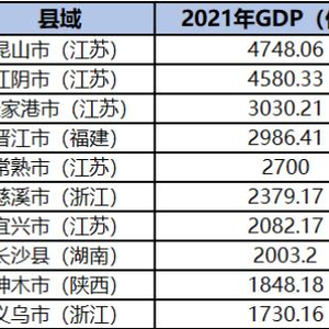 2021年全国GDP十强县(数据来源:赛迪顾问整理及各地政府统计公报)