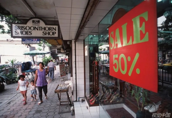1997年,泰国曼谷一家商店为刺激经济危机后失去消费能力的顾客,挂出了半价优惠。
