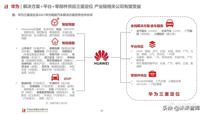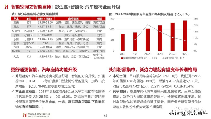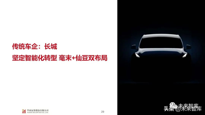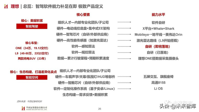 由于智能空间软硬件层面车企多采用供应商方案,因而我们认为核心考验车企消费者需求把控及快速开发迭代能力,在塑造品牌 独特标识同时快速迎合消费者需求变化,新势力受益于内部灵活体制机制及外部扁平化供应体系相对占优。