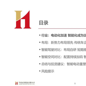 传统燃油车时代,海外车企凭借动力总成不断研发迭代形成的产品力/品牌力,格局相对稳固,自主车企不断追赶。伴随汽车 电动化、智能化发展,中国汽车产业迎来弯道超车良机,电动化加速渗透背景下,智能化成为车企比拼核心要素,主要体现在智 能驾驶和智能空间两大范畴: