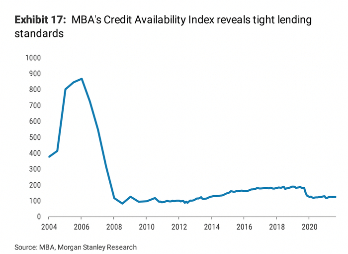 在房价方面,大摩总结指出,随着库存紧张形势缓解,房价在未来12个月内可能大幅放缓,房价增速预计从2021年19%降至5%。
