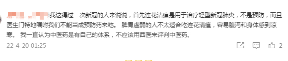 4月17日,丁香医生公众号发文《不要吃连花清瘟预防新冠》,认为从官方、临床、药物研发三个维度来看,目前都无法找到有效证据支持“连花清瘟可以预防新冠”。如果将之作为预防药物服用,可能带来副作用。“一种不能预防新冠的药物,被大批量发放给没有感染的健康人,我们认为不应该这样”。