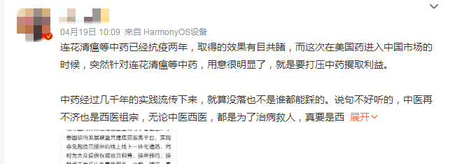 截至4月20日15时,微博话题#连花清瘟#阅读量高达8954.2万次。讨论次数3.1万次。