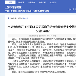 上海浦东市场监管局官网称:“上述食品和生活用品由好趣多公司分别向济宁善道商贸有限公司、杭州超玥电子信息科技有限公司采购。查见两家供应商证照齐备,并能提供所发放的食品、生活用品的生产厂家营业执照和相关产品生产许可证及合格证明。”(记者程思琪)