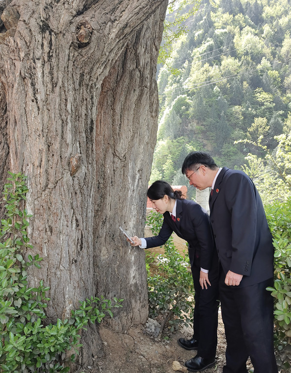 发布会后,主办检察官、新闻媒体记者和蓝田县秦岭生态环境保护和综合执法局工作人员前往蓝田县,查看古树生存现状及存在的问题。