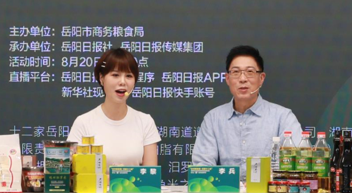 “我觉得岳阳可以用三个色彩来形容,红色代表这片土地的革命文化,绿色代表着岳阳农业的健康、生机,金色象征着丰收的喜悦……”李兵和李黎结合自身多年来与岳阳结缘的故事,讲起岳阳特产来滔滔不绝,将岳阳的文化、旅游、经济、历史随着一波又一波的产品源源不断地强力输出。