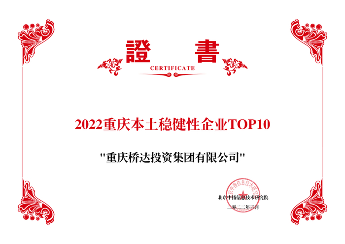 桥达集团创立于2007年,一直以来,立足重庆,稳健经营,积极构建融合新兴产业的业务生态体系,形成地产、新生活服务、商业多位一体战略布局,致力于“绿色健康+智慧科技”产城融合赋能者、美好生活引领者,成功跻身“2022重庆本土稳健性企业TOP10”。