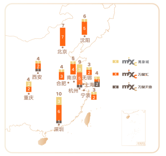 从华润万象生活2021年报上来看,目前全国范围内共有5座万象天地,1座在深圳、1座在杭州、1座在西安、2座在上海。