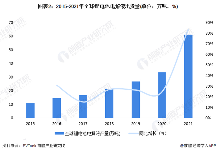 2021年全球电解液出货量增速超过60%
