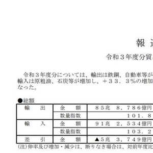 据共同社消息,日本财务省4月20日公布的贸易统计初值(以通关为准)数据显示,日本2021年年度贸易逆差为5.3749万亿日元(约合人民币2660亿元)。这是时隔一年后,日本再次出现贸易逆差的情况。