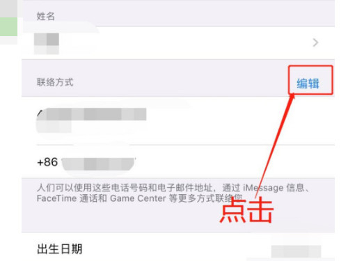 2、找到【姓名、电话号码、电子邮件】选项,选择编辑选项。