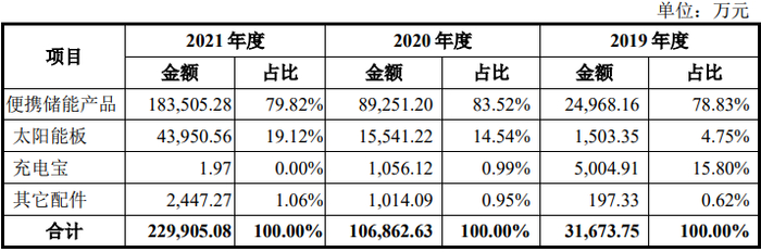 华宝新能源的产品收入占比,来源招股书