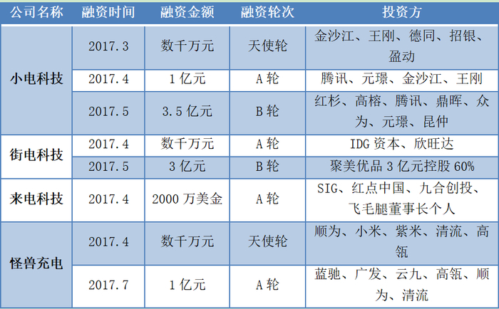 2017年充电宝企业融资表