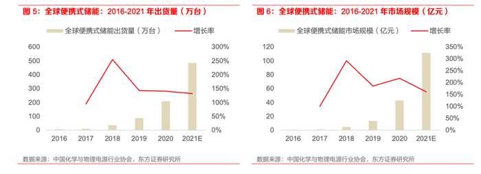 在层层原因助推下,便携式储能似乎带来了消费电子的下一个红利风口。根据东方证券测算,便携式储能市场在2025年预计将新增出货2470万台,2021-2025 年均复合增速达50%,市场空间达563亿元,年平均复合增速约50%。