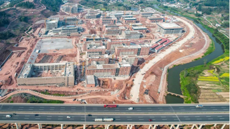 今年春节复工后,在重庆中医药学院建设工地,2000余名工人每天都奋战在施工一线,在保证质量安全的前提下全力抢工期、赶进度。目前工程主体结构已全面封顶,屋面工程已完成90%,防水工程、机电消防、外墙工程已完成75%,综合管网完成70%,园林景观完成35%。该项目计划6月中旬竣工,9月初投入使用。