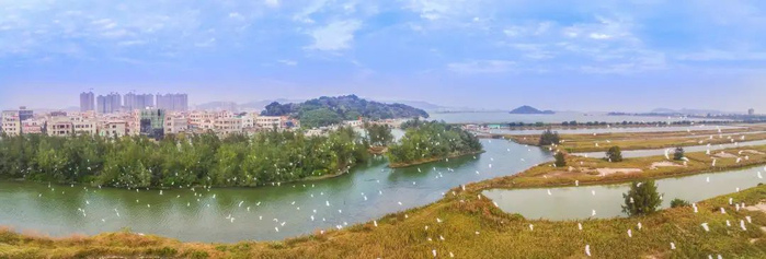 闲看百鸟伫绿洲,不觉夕阳伴潮汐。在凤岗湿地、青洲盐场、河玉围绿道、苏埃湾红树林湿地,随处可见“百鸟翔集,有凤来兮”。