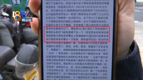 芭莎发型杭州欧美金融城店发型师 小于:“她当时说剪一刀齐,我以为是短发的一刀齐,我不知道是公主切的一刀齐。(小叶:没有,我可以保证,我跟他多次强调,后面头发不要剪的。)当时就换了个人帮她处理,因为当时犯了错误,所以说换人。