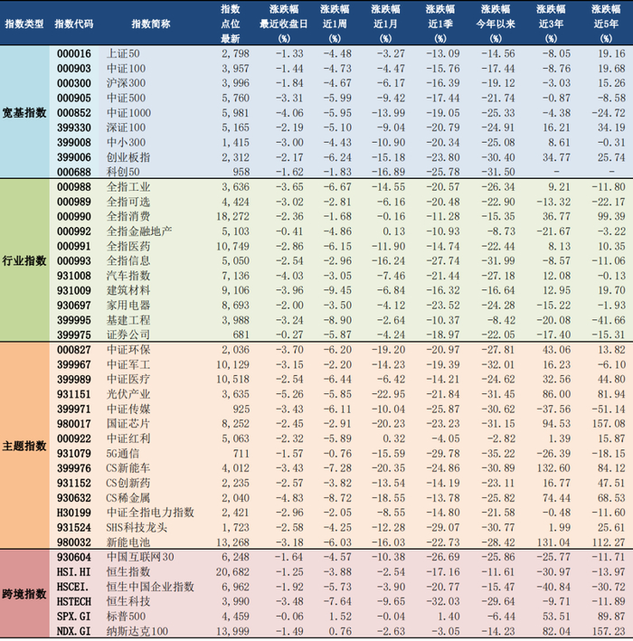 2022年4月21日A股主要指数估值表