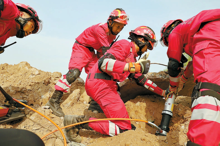 救援队围绕地震救援可视化搜索技术、狭小空间破拆与顶撑装备操作使用、伤员救治与转移等科目展开实战化训练。
