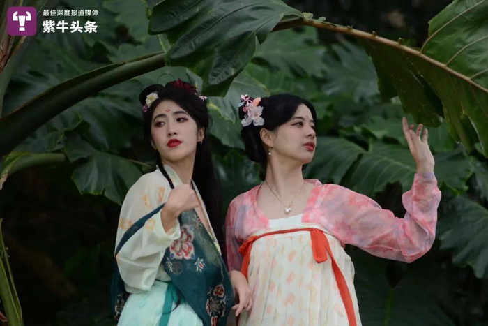 “画画的小麻雀”(左)和姐妹穿着汉服出游