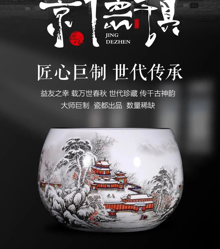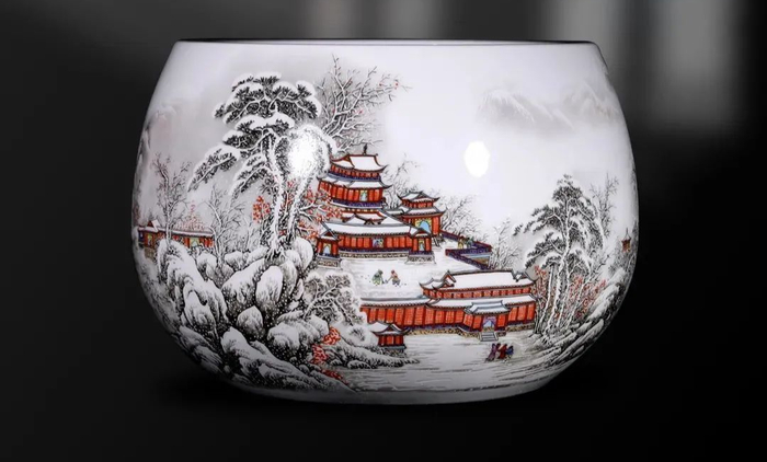 这款《踏雪寻梅》聚宝盆,采用的便是来自景德镇的制瓷技艺。