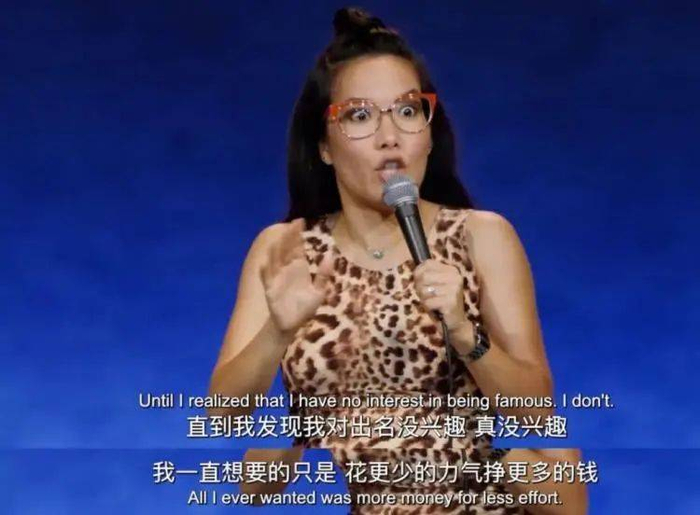 比如说直到2021年才成为年度十大流行词的“躺平”,早就是黄阿丽的标志性金句,出自她2016年的网飞原创喜剧专场《黄阿丽:小眼镜蛇》(Baby Cobra)。