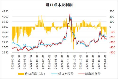 进口方面,在熟悉了港口防疫政策后,二季度进口到港效率应较一季度有所提高,尽管后期海外部分装置计划检修,但考虑到港口一直存在滞港、浮舱等情况,因此预测二季度进口量大概率会上升。