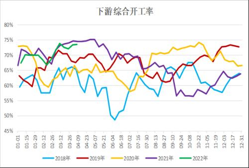 需求方面,受上海等地疫情影响,需求氛围不佳,部分地区物流停滞,但目前甲醇下游综合开工并未下降,需求弱化预期仍有被证伪可能,而若后期疫情缓解,需求预期将大概率出现反弹。